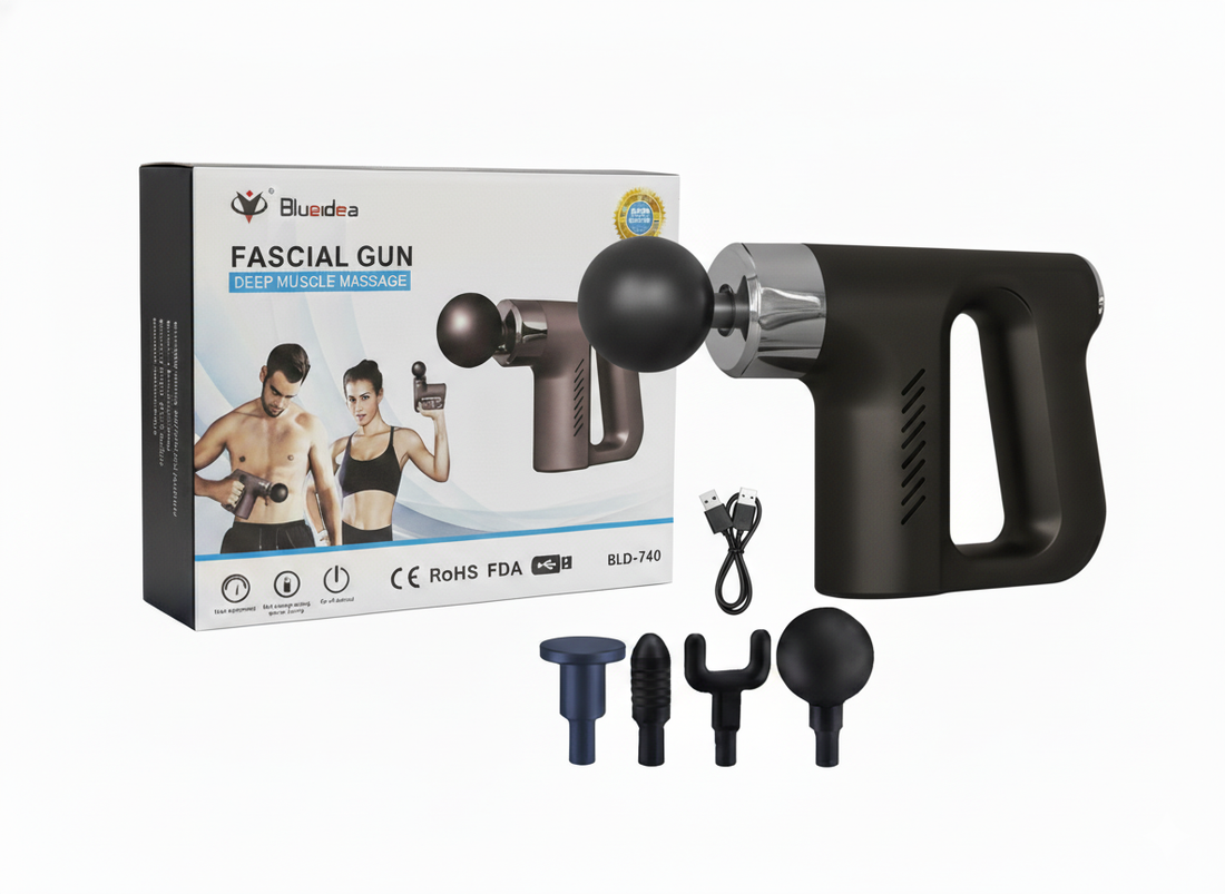 5in1 Powerful Double handled Fascial Massage Gun, Percussion with Deep Tissue Massage, BLUEIDEA.